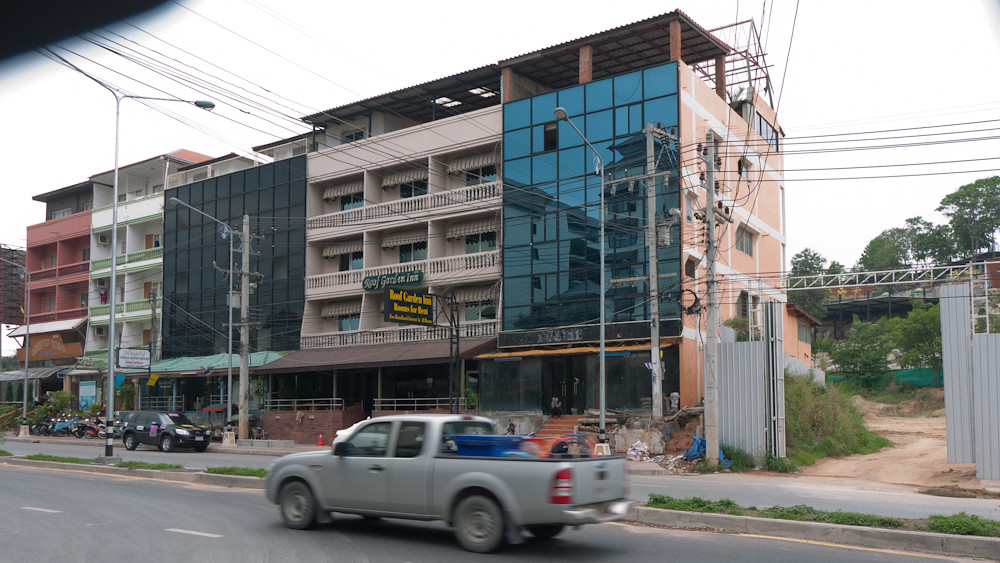 From the reception I can look across the road to the development site. At least I could if it were not for a large block of shophouses blocking the view: