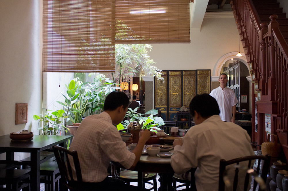 There wasn’t just the roti of course. There was a banana-leaf vegetarian meal, cendol, cendol with ice cream, gula melaka ice cream, ayam laksa, and more than one plate of char kway teow. Perhaps most charmingly, there was lunch in a tea house, where sun shone through the open courtyard inside the house and everything was served with a measured calm and stern instructions on how to prepare and serve the tea.