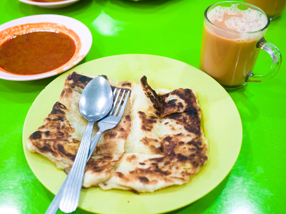 Unfortunately, the room rate included breakfast; so the first morning we felt obliged to partake. But the next two mornings it was over the road for roti canai, curry sauce and a mug of teh tarik (or cha chak as the Thais call it).