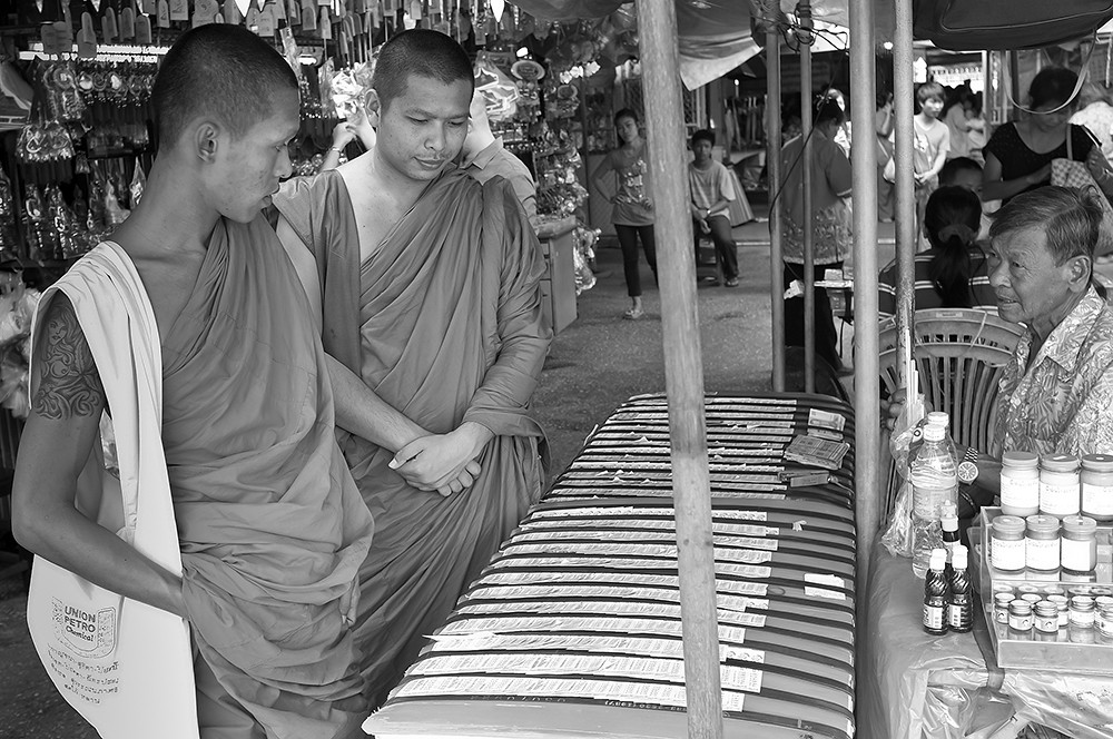 Buying lottery tickets.
