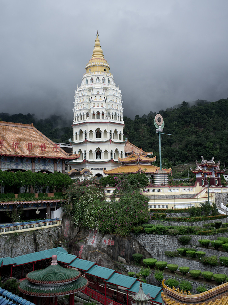 Walked around for a while, staring at the non-view, and then headed back down the hill, followed by a half hour walk to Kek Lok Si temple which did itself no favours by being rained upon, or by being approached up a narrow staircase crammed with stalls.