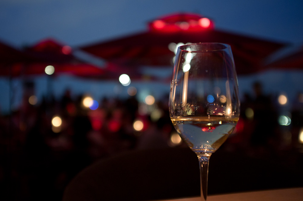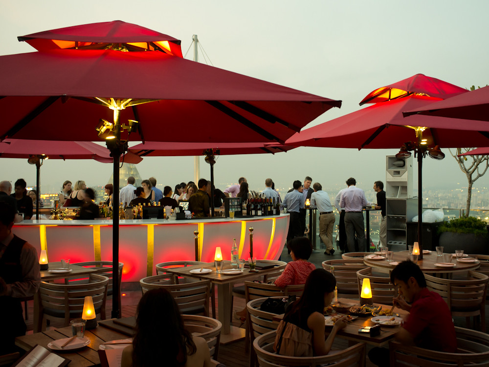As evening falls, the various bars and restaurants on top of the hotel fill up.