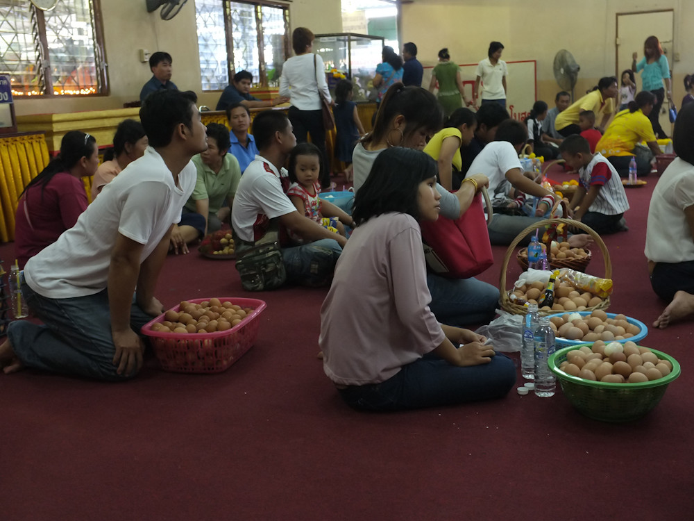 There are eggs everywhere. On shelves, on the floor, being carried by people and, in one unfortunate incident (unfortunate because I didn’t snap it), dropped by people. According to my cultural guide, if your wish comes true, you bring eggs to the temple. You offer them to the Buddha who apparently doesn’t want them, because you then take them home and eat eggs for weeks. I am sure she made some wishes while she was trotting round the various attractions, so there is a chance we will be back again at some point bearing eggs. If so, you’ll all be invited round for a monster omelette afterwards.