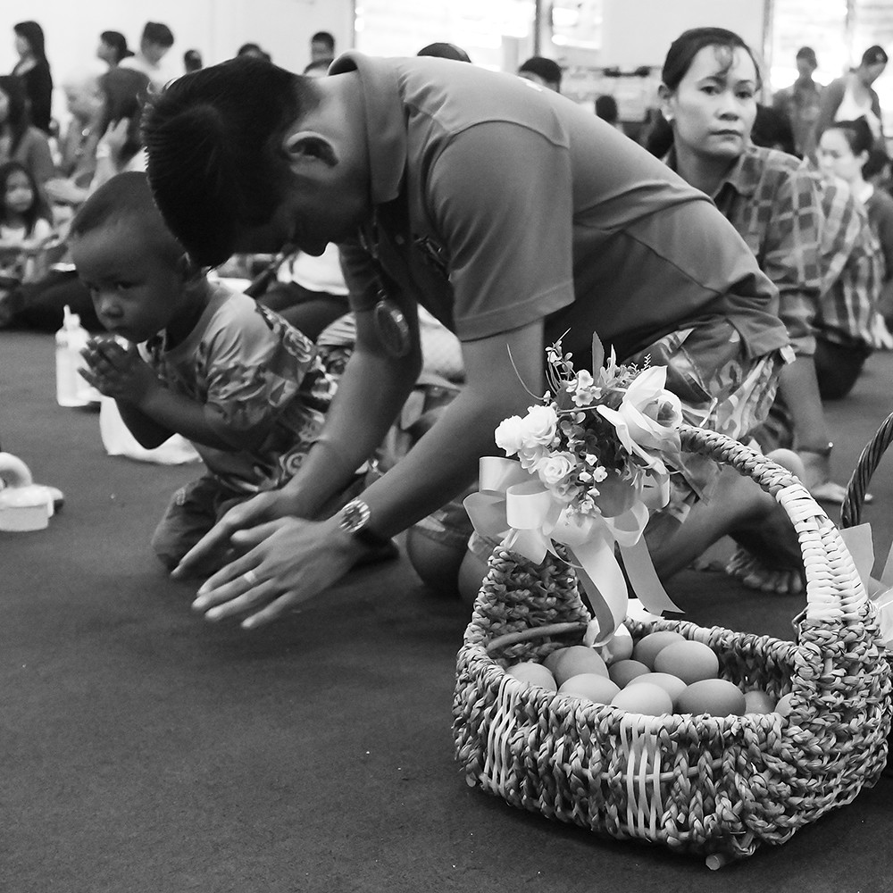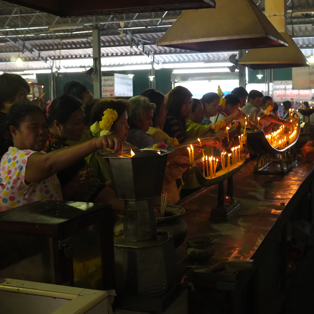 Moving into the depths of the building, there was an almighty scrum of people not doing what Thai people are not famous for (queuing), with the objective of getting close enough to candles.