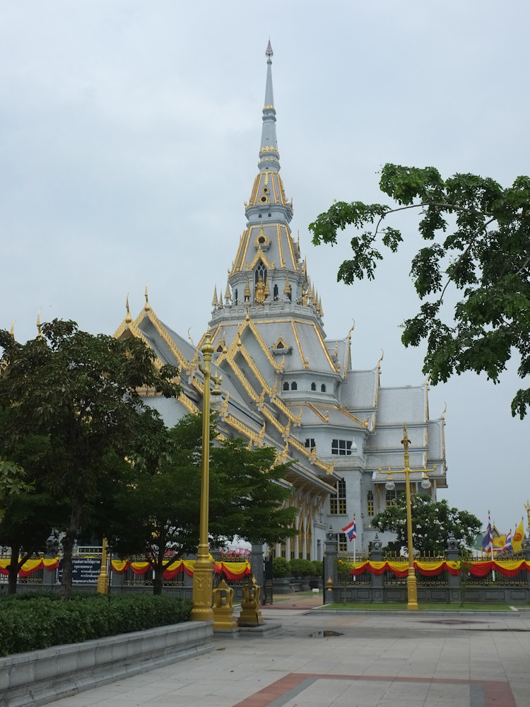 Wat Sothorn is a large but somewhat unimpressive temple. The outside lacks decoration, although maybe I caught it on a bad day because it was pissing it down when I took this: