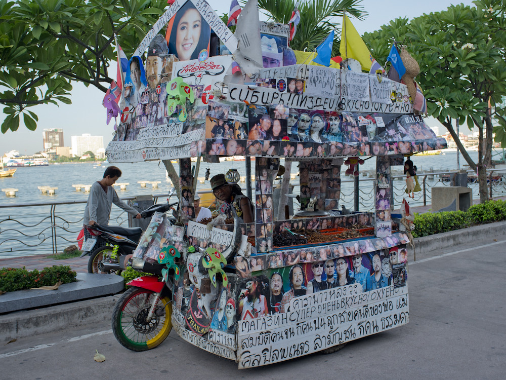 2011-08-26| Wally saysMost of the photos displayed on his cart are of him kissing his pretty lady customers - Lucky Bugger !! I wonder if his mo/cy is a Bugatti ?