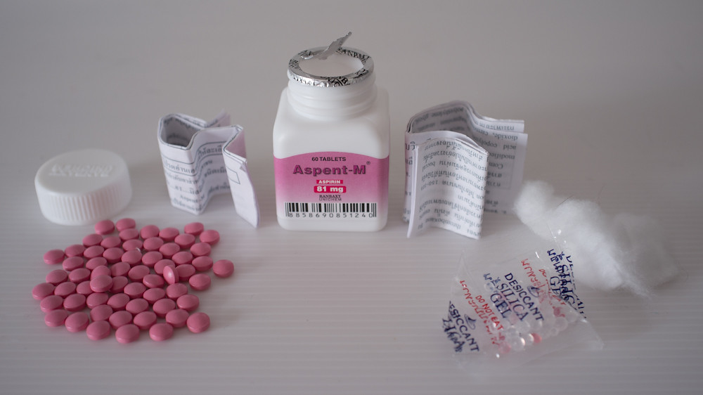 Finally I manage to remove the instructions. No point in reading them because they will just say: “put pill in mouth, drink, swallow”; and I can just about manage that without needing guidance. But no sign of the pills yet. Instead there is a packet of silica gel of just the right dimensions that it is impossible to remove. If you try, then you will almost certainly break the packet, leaving the beads of silica gel (which are conveniently almost exactly the same size as the aspirin) to rattle around in the container with the pills. I have no idea what role silica gel might play in stroke prevention, but I have certainly ingested some as aspirin substitutes over the years.