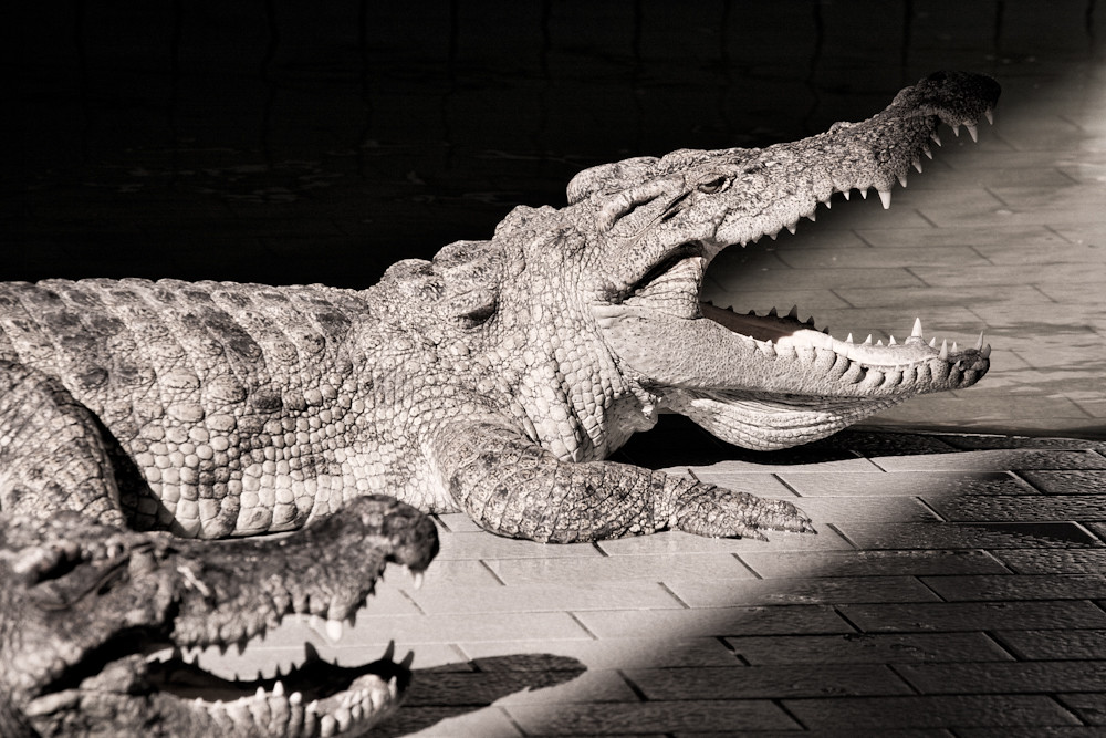 Well, they may be used to having food thrown over a fence, but I am sure a few million years of evolution will kick in and ensure that any pedestrian in their vicinity will provide a substantial snack. On the other hand, millions of years of evolution will not have prepared them for the determined stall holders in the area that can envisage putting crocodile steak on their menu for the next few evenings.