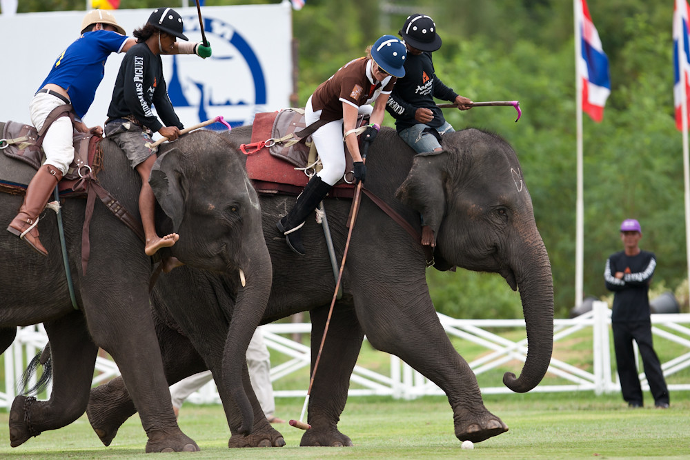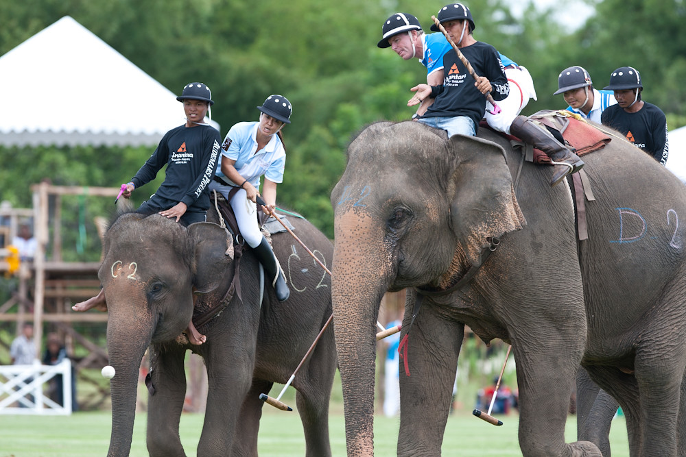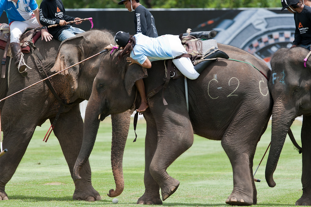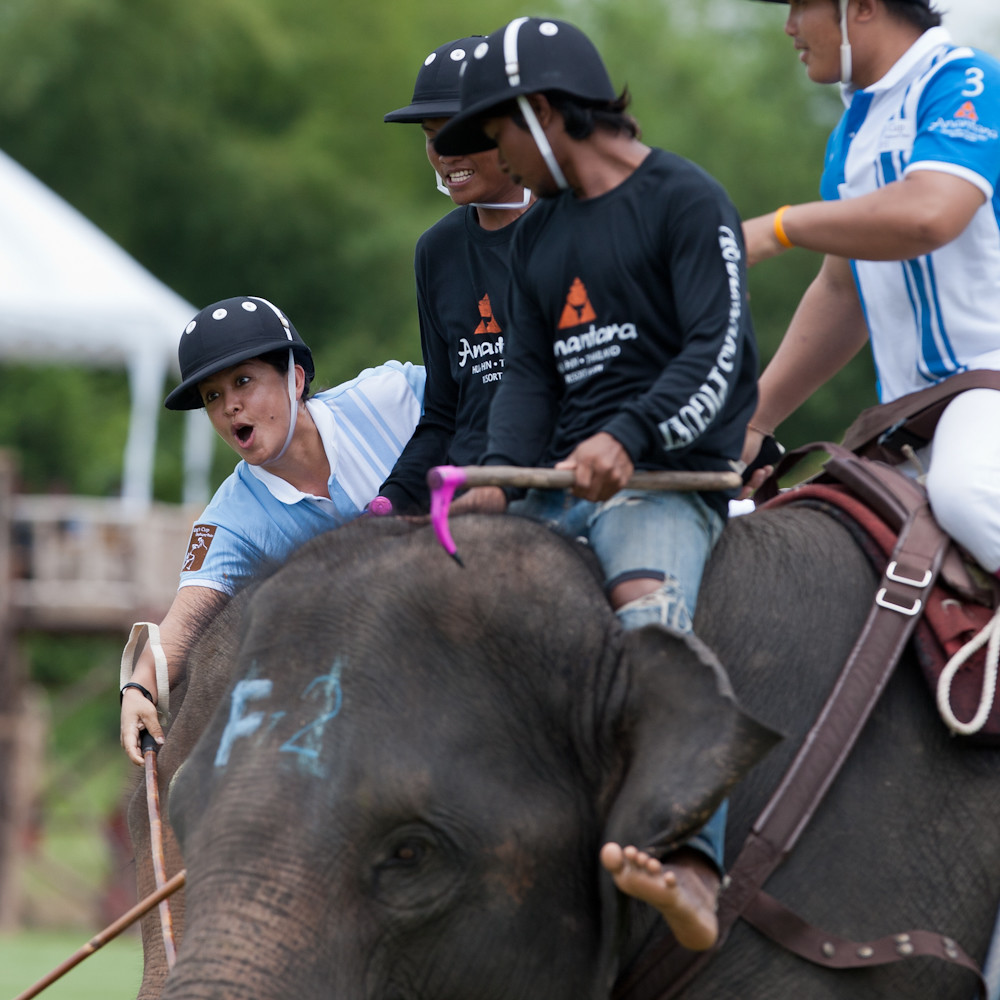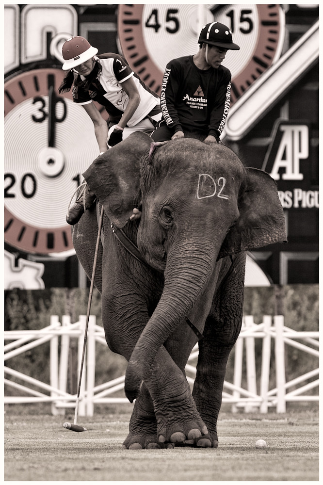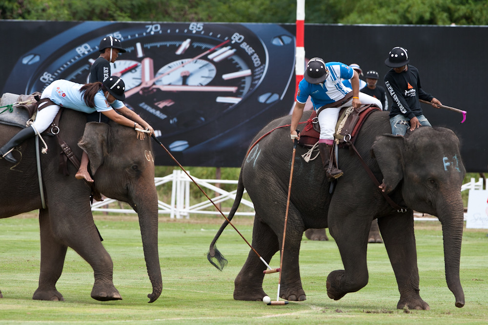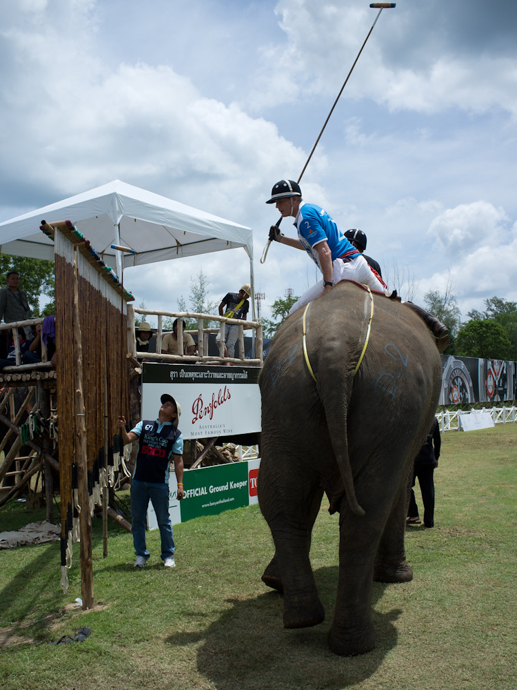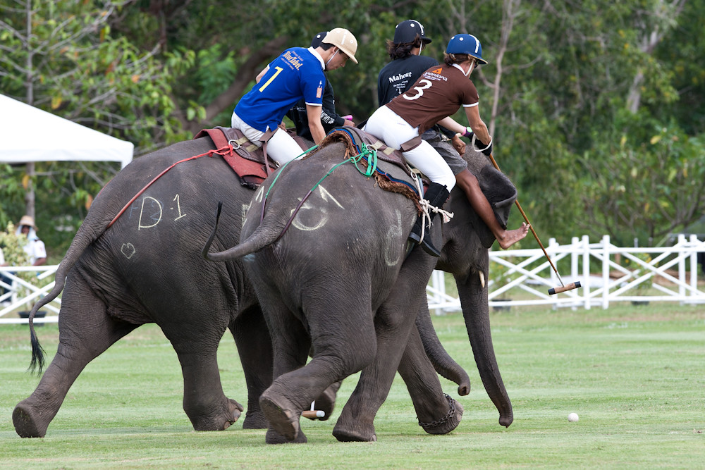 When the very nice lady from the polo club called and said she was playing elephant polo in Hua Hin, and would I like to come and take a look; the only answer was “yes”. Not because I like elephant polo, but because she is indeed a very nice lady who has me come and shoot her horse polo every year and provides me with excellent food and wine. But the event stretched over seven days, which is about six and half days too long, so a few hours last Tuesday was more than enough for me.