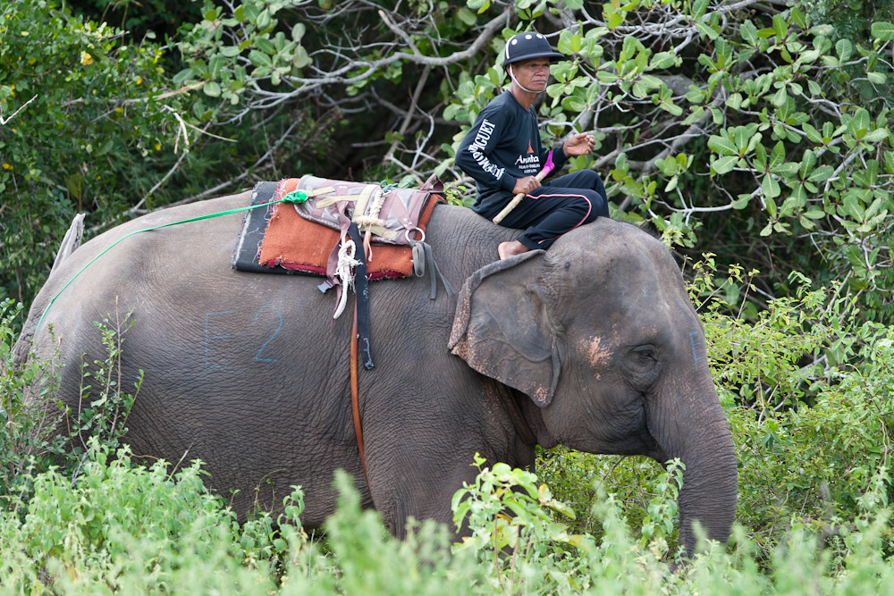 The elephants are brought down from Surin and for them it is a bit of a holiday. Good food, a jungle area to play in, and plenty of water to splash around. Some of them think that running around chasing a ball is fun, some of them don’t. There is no way of knowing which elephant is going to tolerate the game, so the first couple of days are spent weeding out those who don’t want to play and would rather just muck around in the bushes.