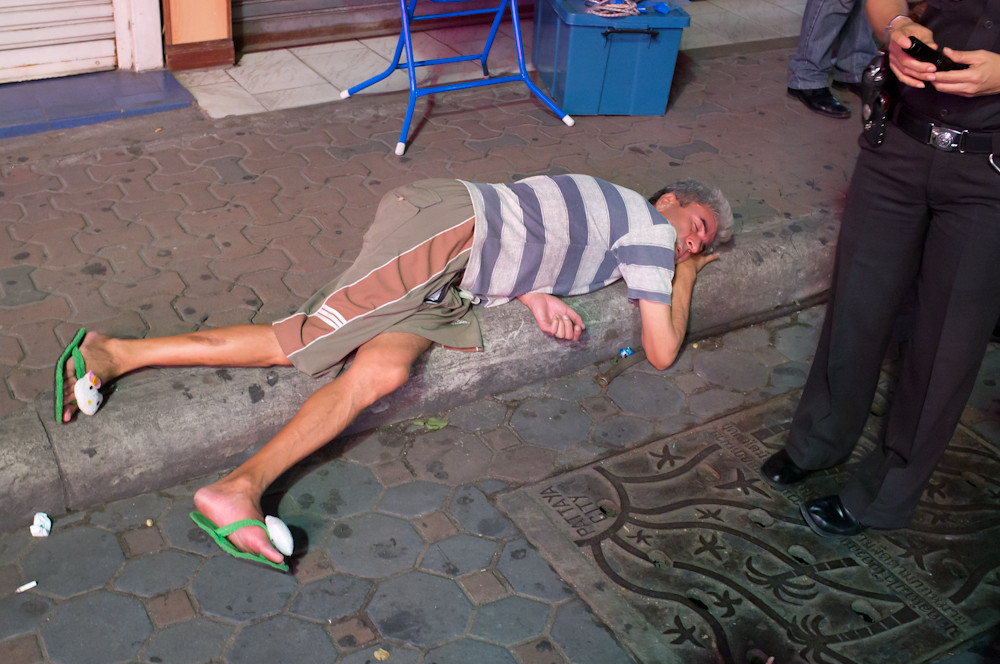 If your going to pass out pissed on the pavement in Pattaya; be sure to be wearing green Hello Kitty flip-flops. You may be unconscious, but at least you can still make a fashion statement.