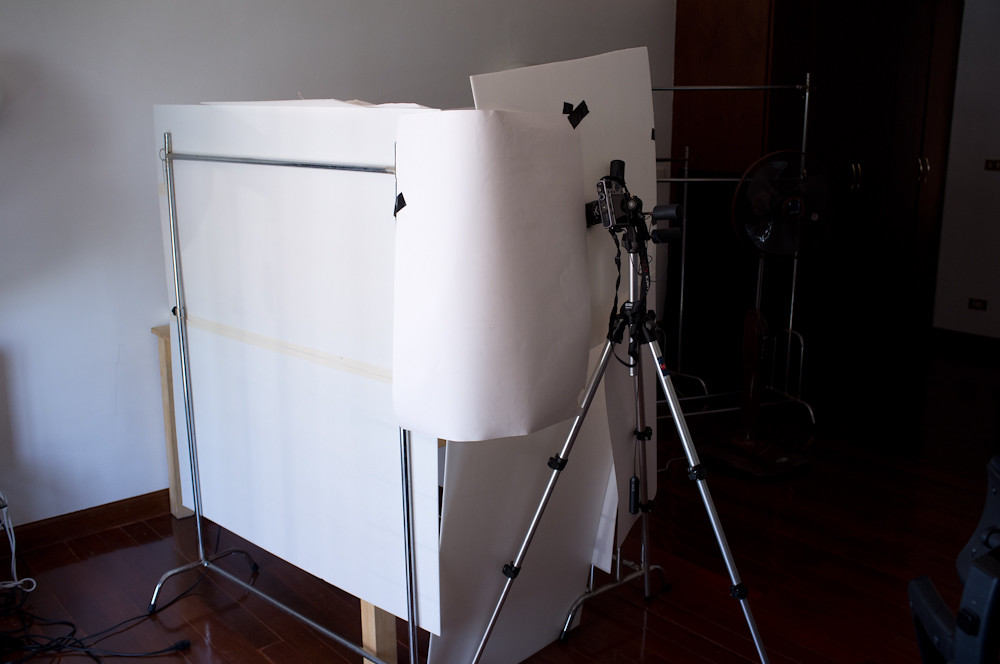 White everywhere and just a small hole for my lens to poke through. Show reflections now you bastard! It did, from the light coming through the window and various small holes and even places I didn’t know there were reflections. Oh dear.