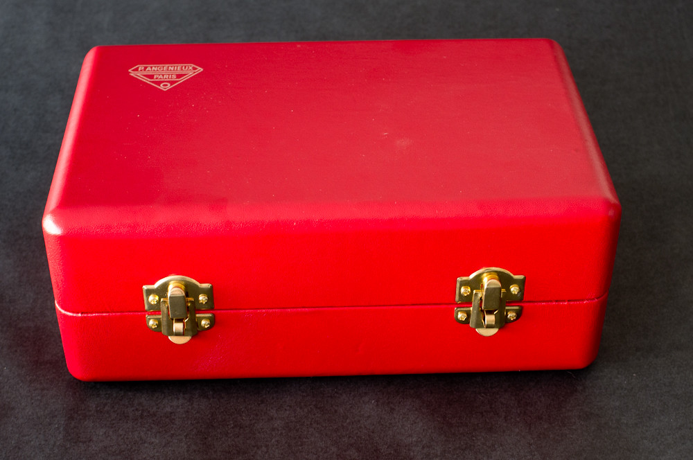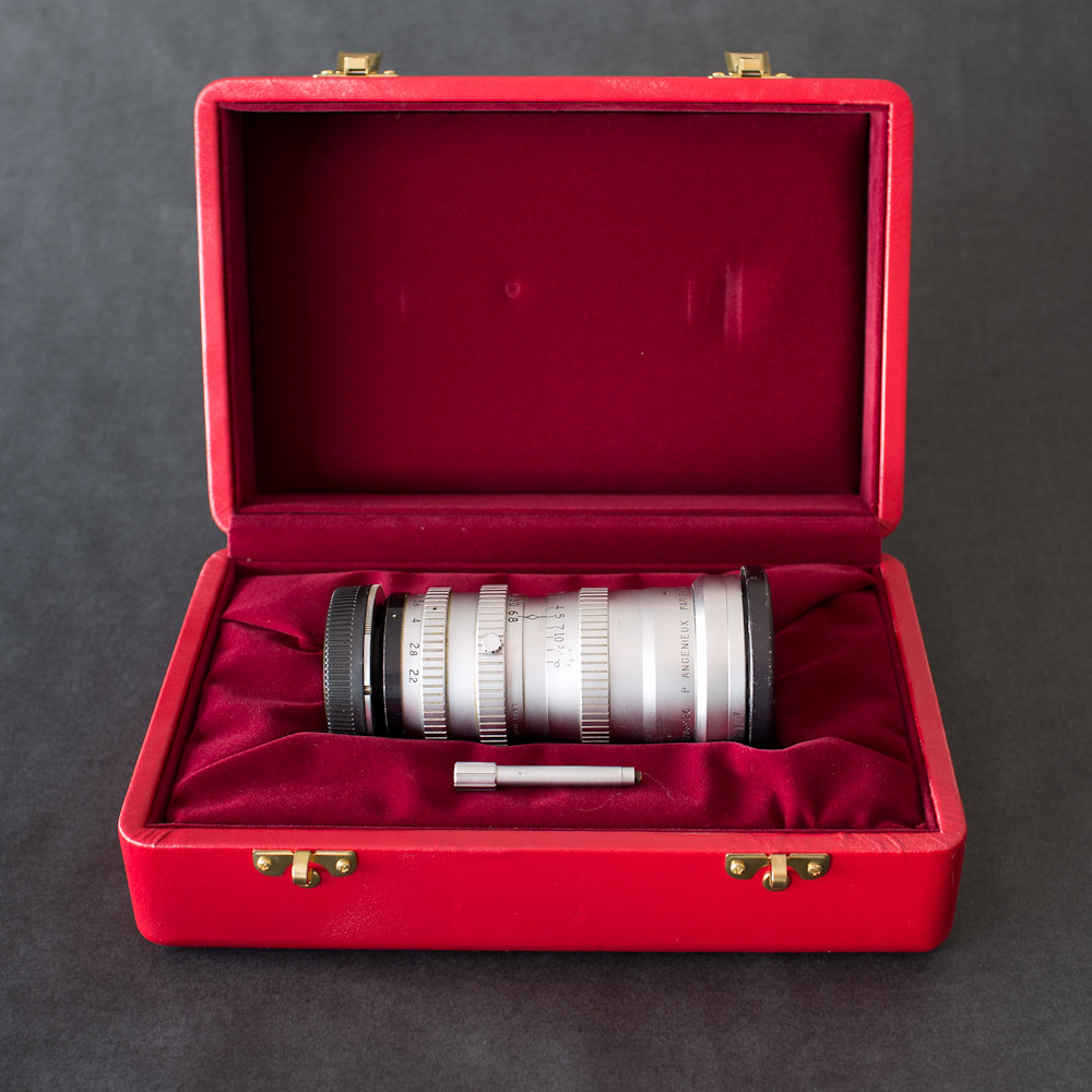 If you buy a lens nowadays, it comes in a cardboard box, if you are lucky. But in the good old days, Angenieux supplied their lenses in beautiful red boxes. My copy arrived in bubble-wrap, the box having long since disintegrated; but Spacefruit received his in an original box, albeit one that was close to death.