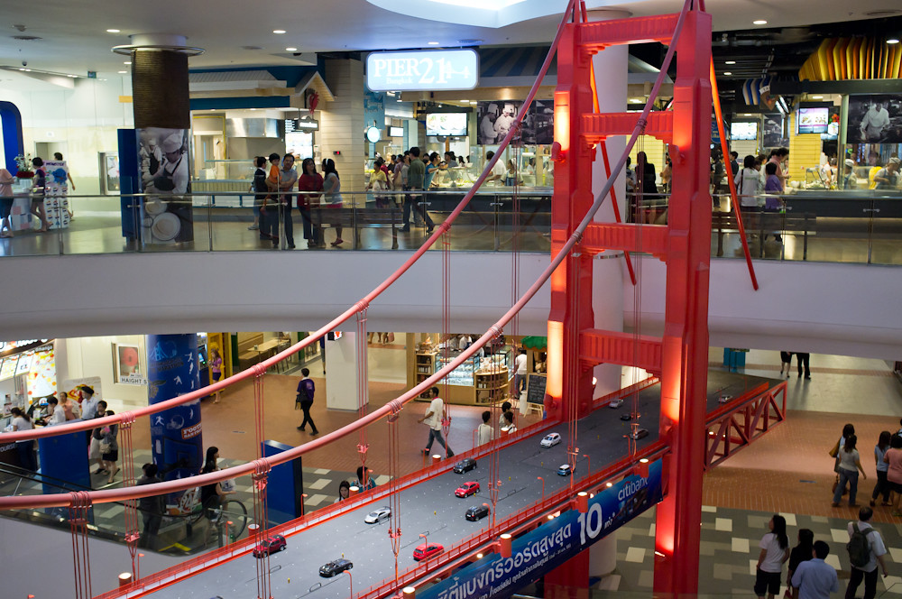 I gave up in my hunt for devastation and headed for the latest Bangkok mall, Terminal 21. Packed out, mainly with young Thais strutting their stuff and showing no signs of shopping for rubber boots or inflatable boats. What’s wrong with these people, don’t they know that a flood of “biblical proportions” is about to hit them (thank you CNN)?