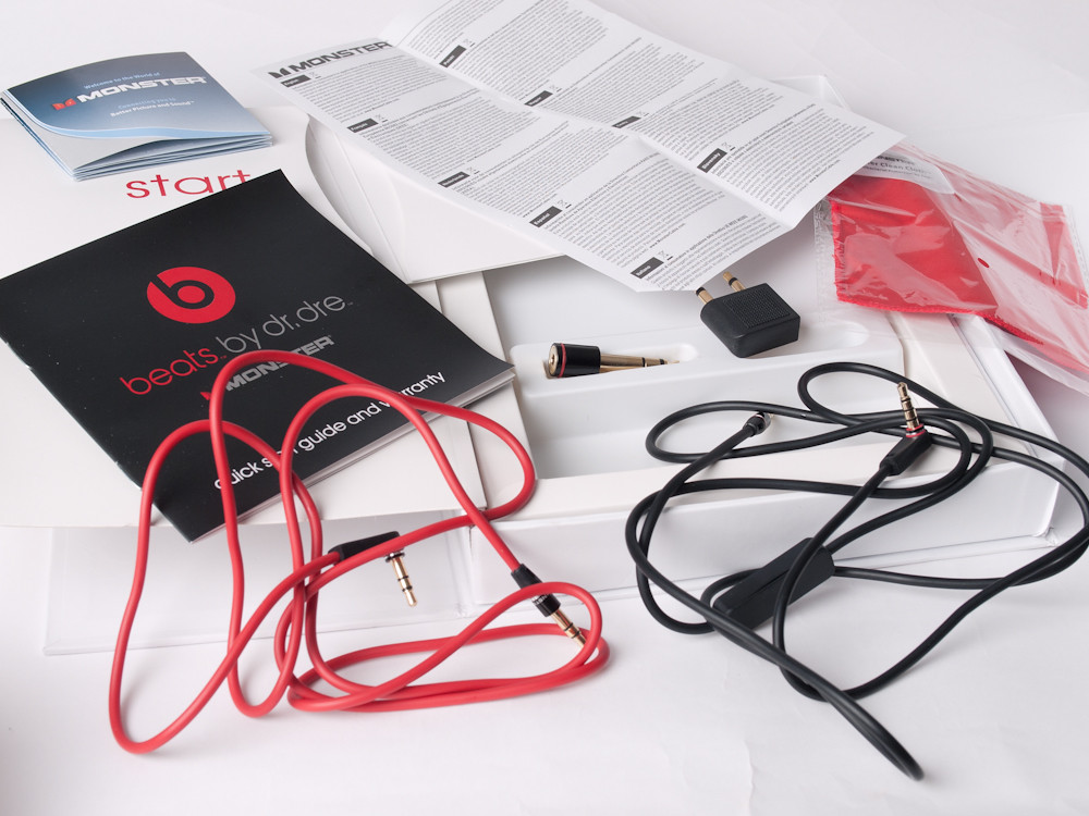 The accessories are comprehensive, down to the cleaning cloth, warranty and a little Monster catalogue: