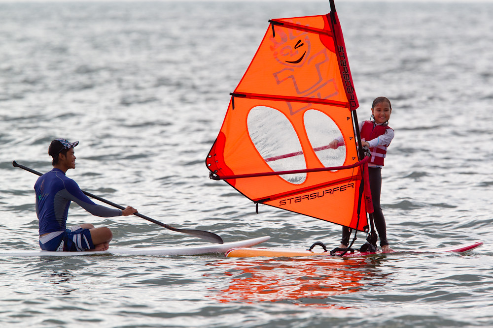 As the wind dropped, the learners took to the water, and this young lady provided proof that you are never too small to start: