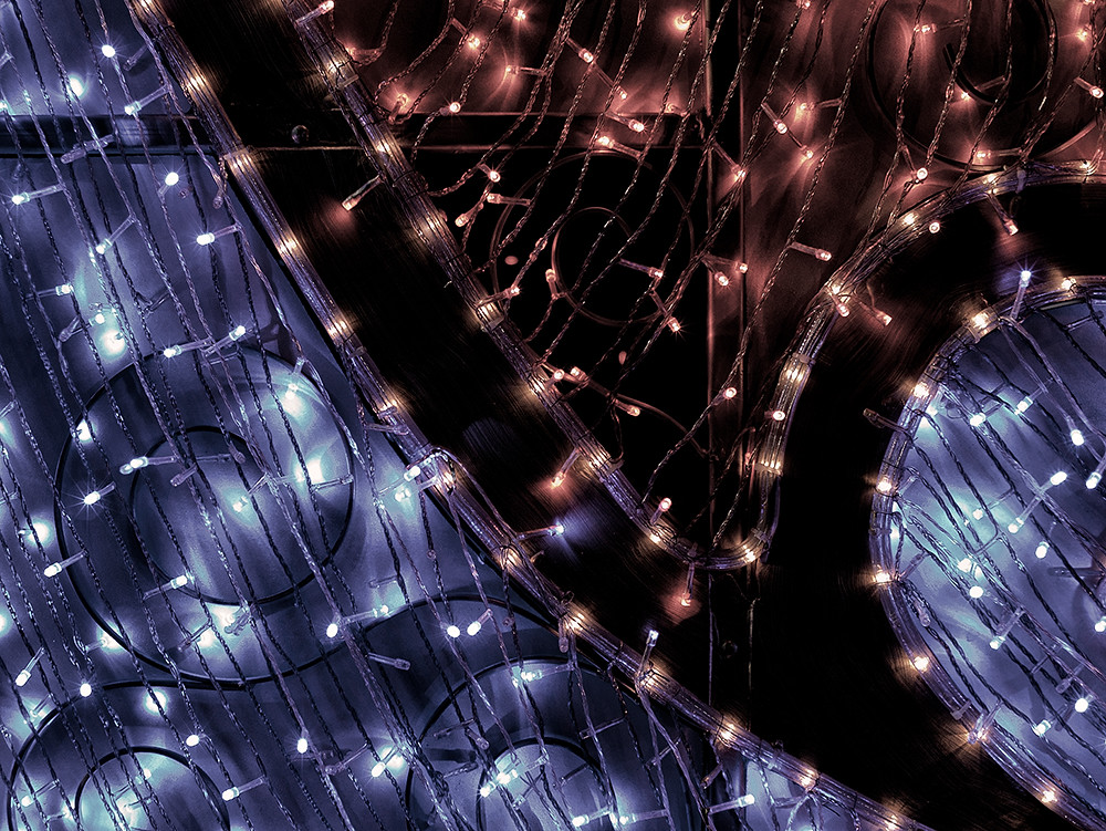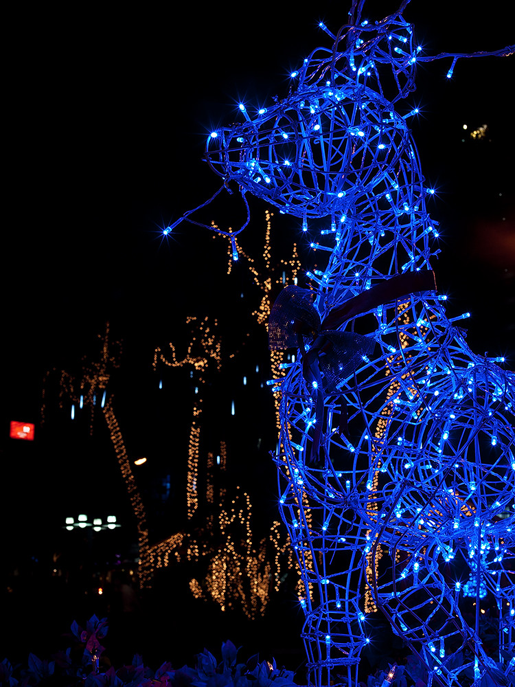 Still, this forced merriment gives me an opportunity to go and point a camera at the lights; this first attempt was taken around the Royal Garden Mall. Others to follow if I can work up the enthusiasm.