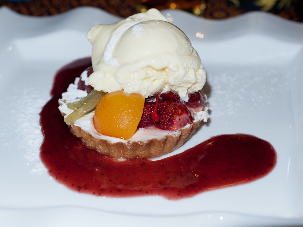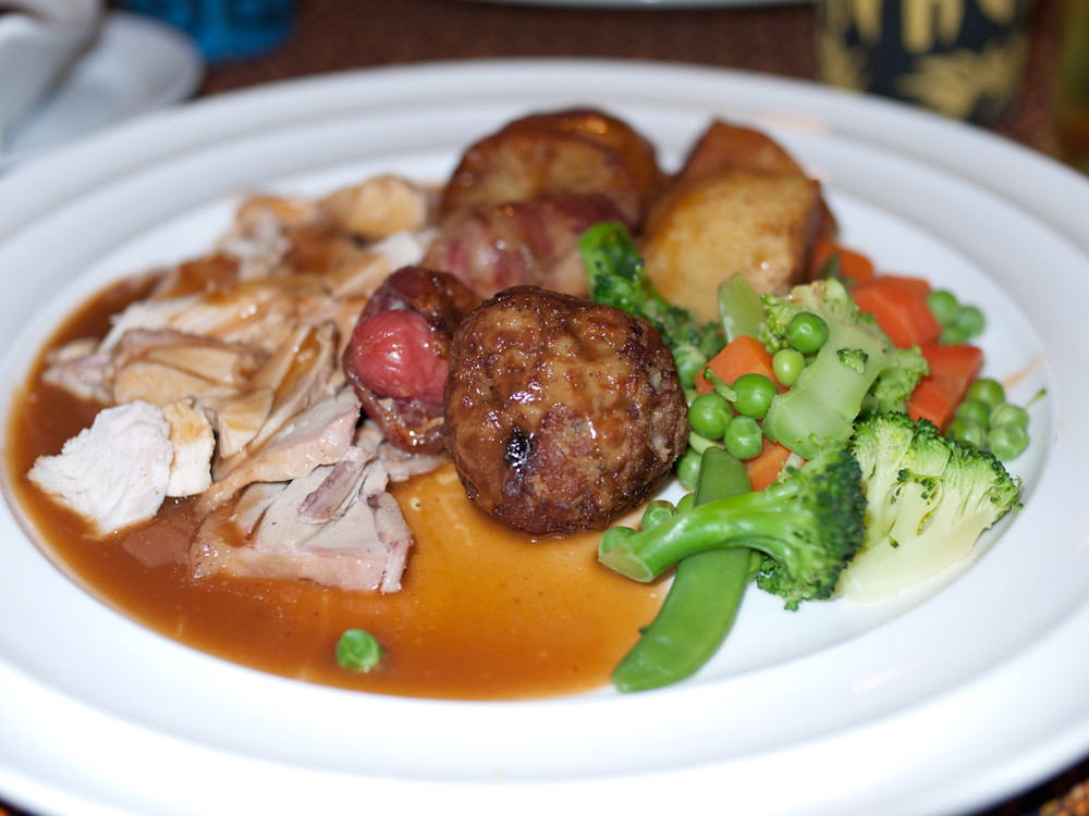 There was a bowl of soup with a loaf of bread on the side, turkey and all the trimmings, finished off with a fruity tart thing with ice cream; after which we were totally stuffed, which I vaguely recall is the necessary outcome of an Xmas meal.