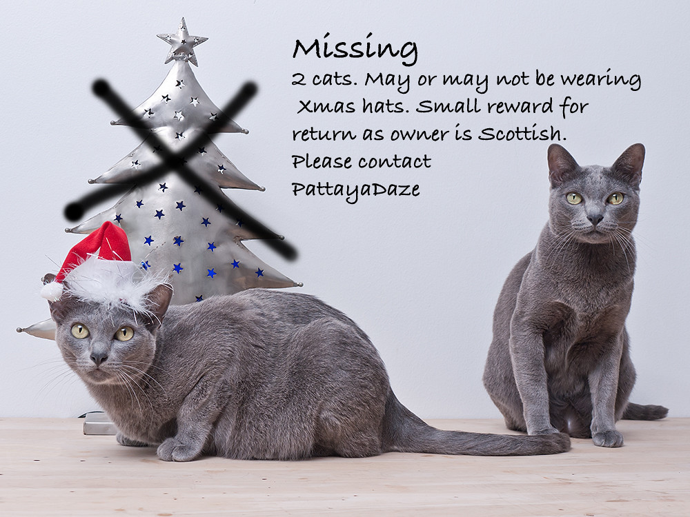 As it is the festive season, I have decided to put aside our differences and offer the following poster to PattayaDaze so he may recover his cats: