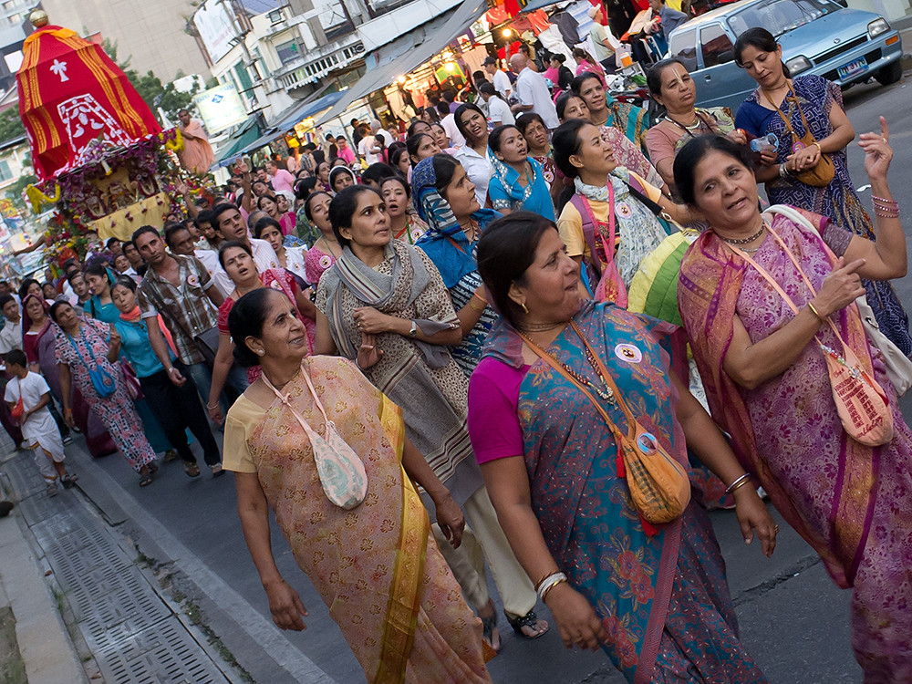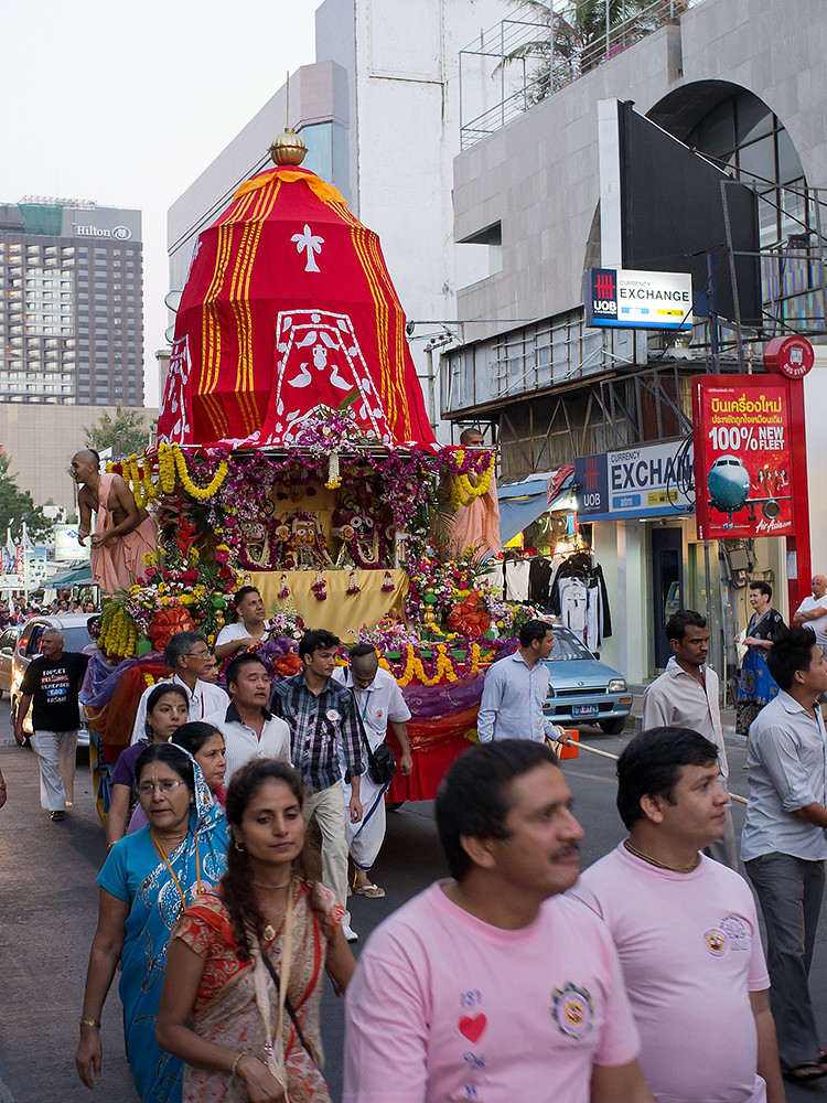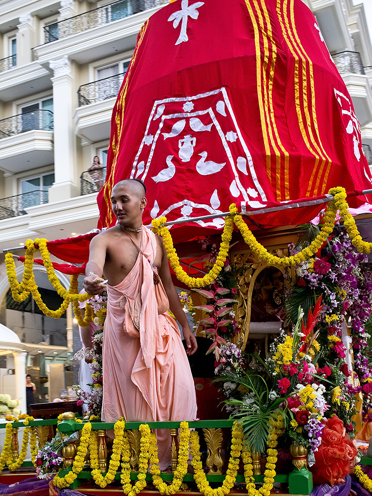 And the more is a Hare Krishna parade. I have no idea how they persuaded City Hall to allow them to tag onto the end of the main parade; or maybe they just turned up and took advantage of a clear stretch of road. Whatever, they were all having a good time, doing the Hare Krishna mantra and handing out bags of peanuts; so they were well received. At least by me, I was starving.