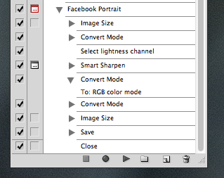 You will note that my Action is called Facebook Portrait. This is because, when I defined this Action, I specified height parameters on the two image re-size steps,as we did in the example. You will have to go through the process again and build another Action where you specify the width, this can then be used for landscape orientation images. If your image is square, you can use either!
