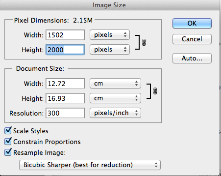 Tick the boxes as shown and make sure you choose Bicubic Sharper, this will lightly sharpen the image as it is reduced in size. Click OK.