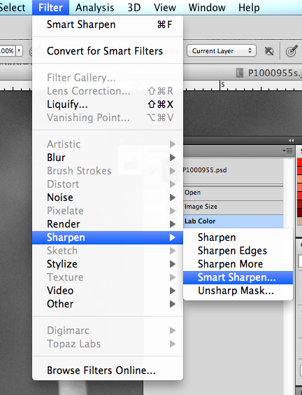 Now it’s sharpening time. Select Filter/Sharpen/Smart Sharpen: