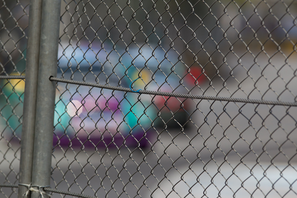 The efficiency continued round the track where the best vantage points to take photos were marked “media only”, and I didn’t have a media badge; and when I tried to get in they threw me out. So I had to limit myself to little holes in the fencing, or sometimes shooting right through the fencing, like here:
