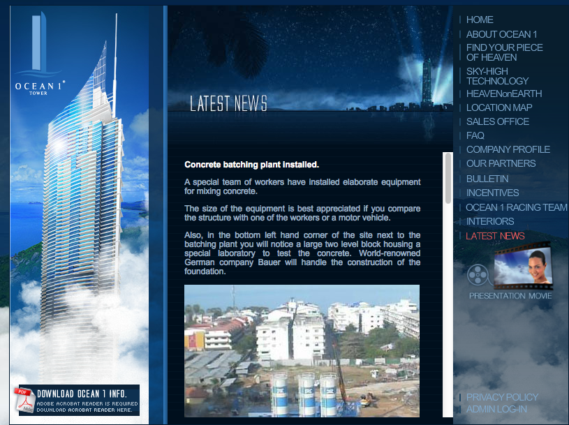 2012-02-20| TheSon saysI certainly hope nobody goes to www.ocean1tower.com/admin/ and manages to correctly guess the CMS log-in.
