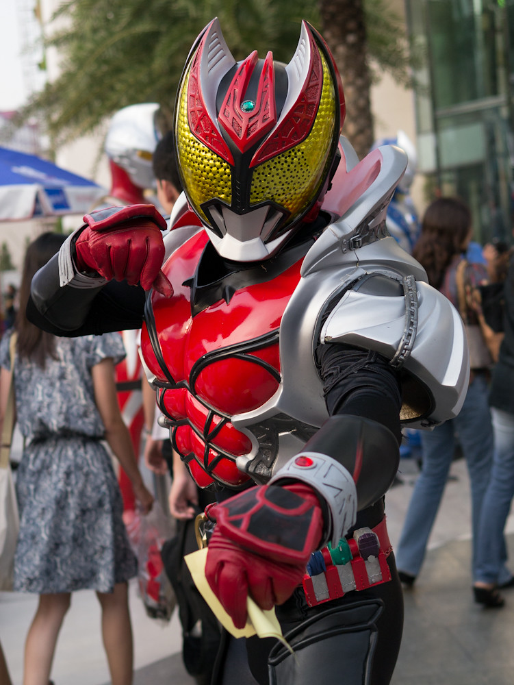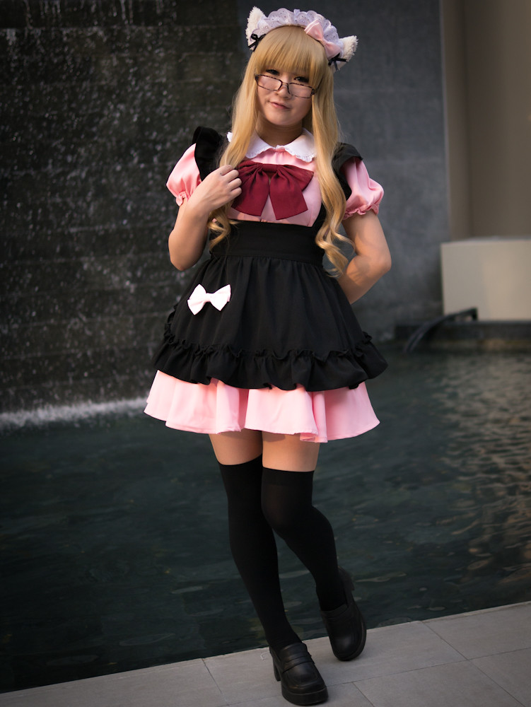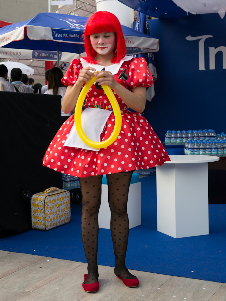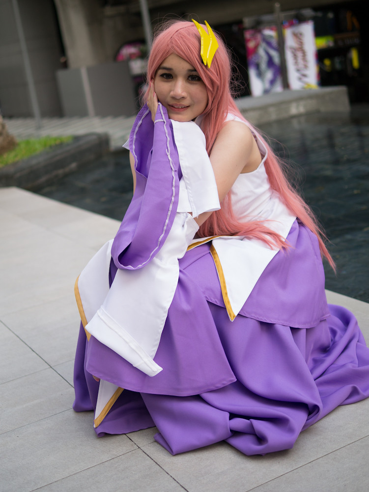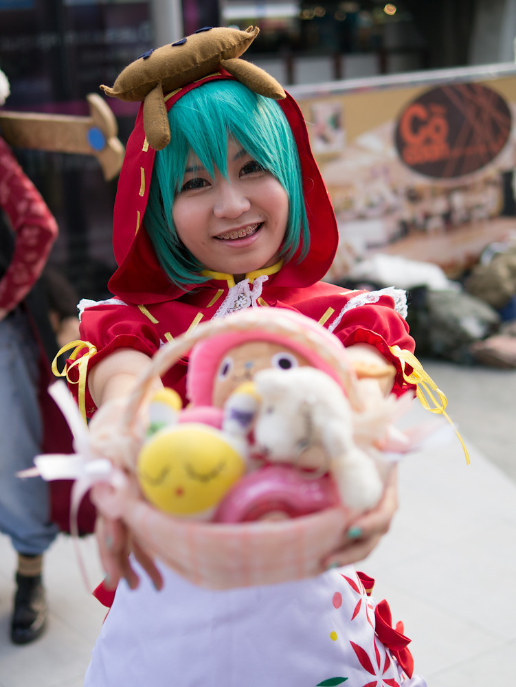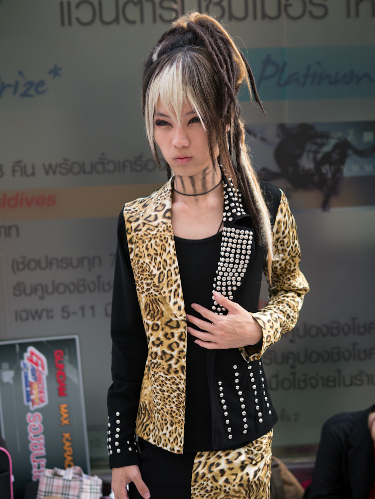 The cosplay convention was happening outside Paragon in Bangkok and I had fifteen minutes of shooting time before we had to meet someone for dinner. What a target-rich environment. Dozens of weird, or cute or, best of all, weird and cute students in outrageous costumes, just aching to be photographed. I could easily have spent an hour or more with them. Still, in fifteen minutes I caught a few, and here they are:
