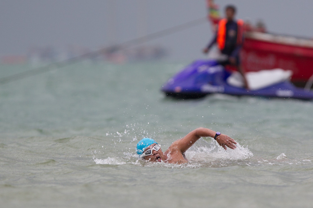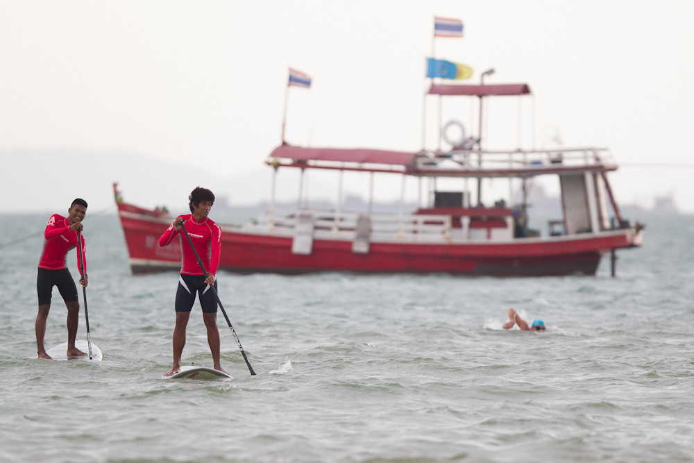 Still, not finished yet. Today was the cross-bay swim for charity and Craig was supporting it by providing a team of SUP riders to help protect the swimmers on their journey. I stationed myself at the Dusit hotel (which has a very good cake and coffee shop; just by chance) and caught a few shots as the swimmers arrived.
