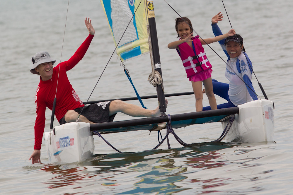 So they were all loaded onto a windsurfing training catamaran which was much more fun: