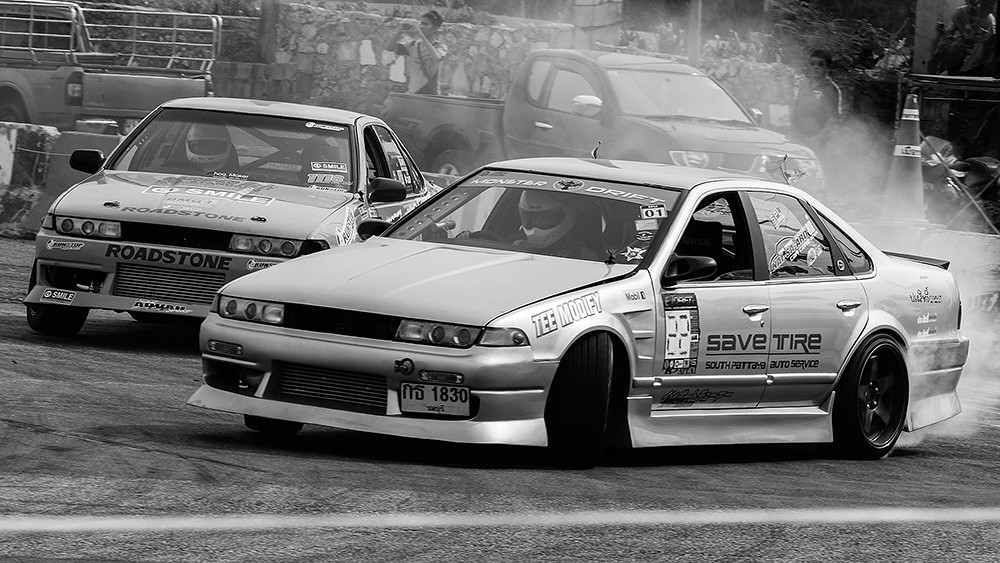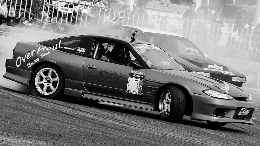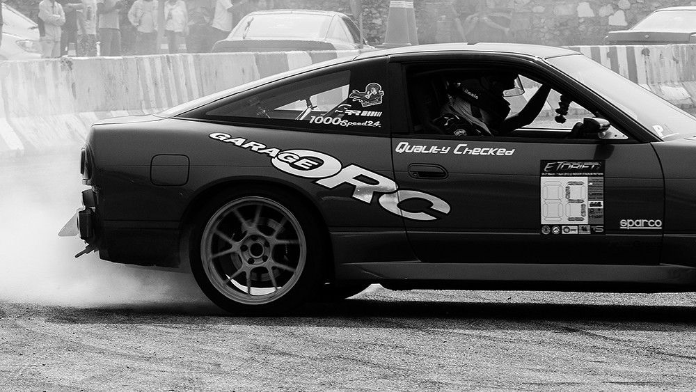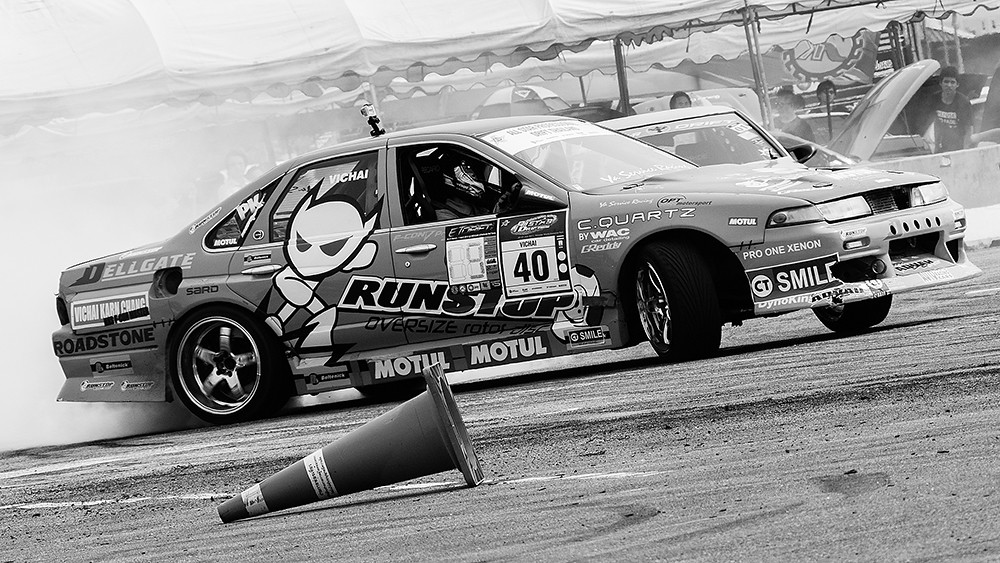 Made a return to the drift racing today and took a few shots. First one I reviewed on the computer seemed a bit drab, but it perked up when I converted it to black and white. So I did the same to all of them.