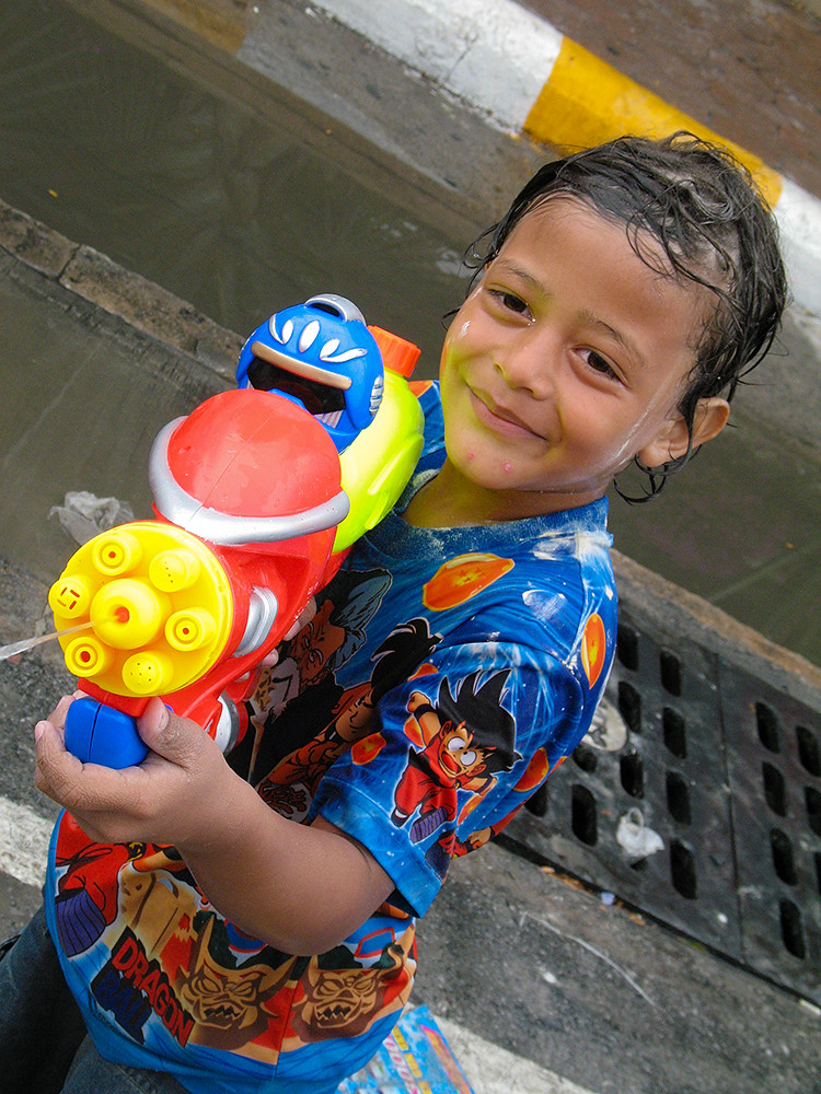 Of course there are some Thais playing early too. There is a gang of small kids splashing water in my soi; but they can be easily avoided or, as a last resort, run over. And if you demonstrate to the Thais that you are nicely dressed and not really up for a soaking at this time, they will leave you alone.