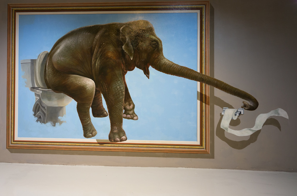 Firstly, it is big. Many halls filled with artwork. And the artwork is cleverly executed, with a 3D effect which is very convincing and you have to get up close to appreciate that it is just painted onto a flat wall.
