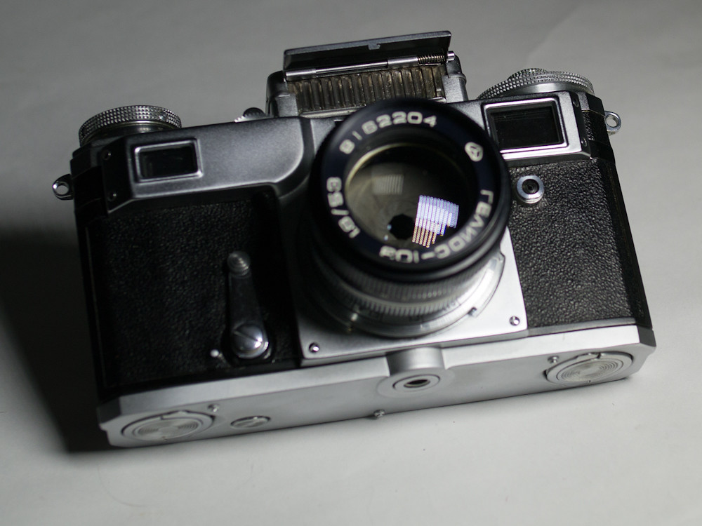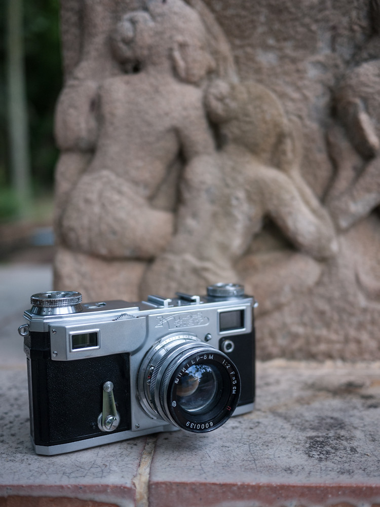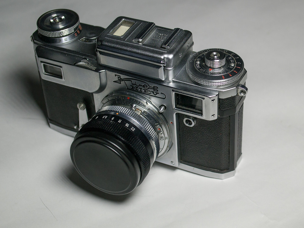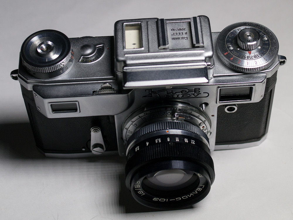 It is, of course, a fine example of the Kiev 4. Even better condition than my Kiev 4A, probably because it is ten years younger (1970 model). Came in a brown leather case, which was a bonus. To be honest, I was initially only looking for the lens that is on the camera, a Helios 103 so I could use it on the Kiev 4A. But the lens goes for $25 and up on eBay; and this camera and lens and case was a wallet shattering $61; irresistible.