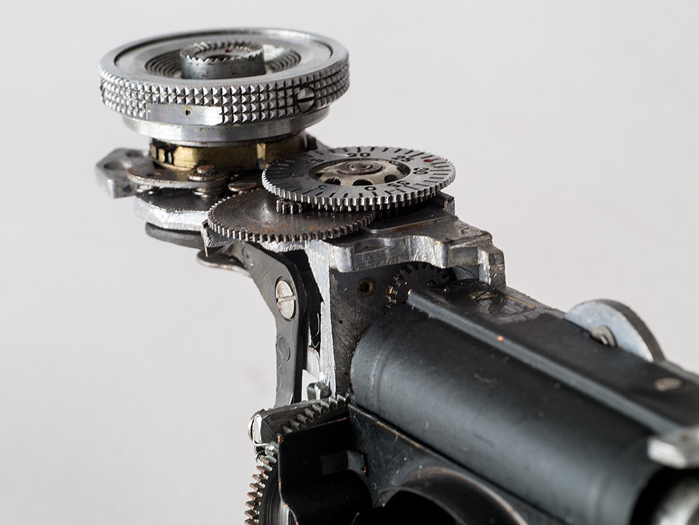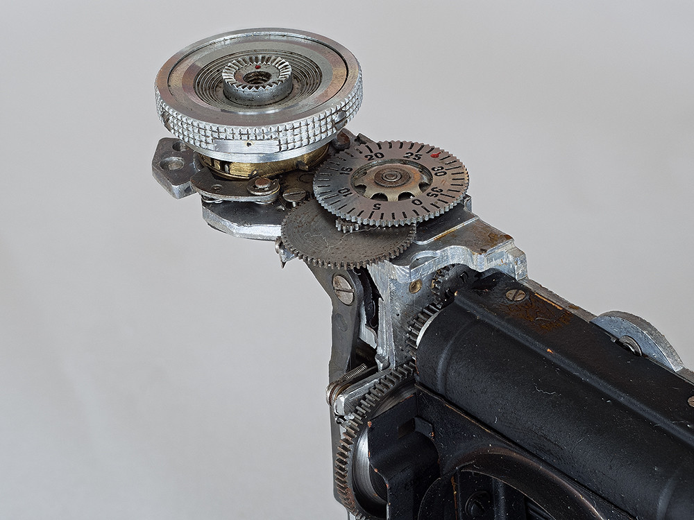 The slots in the brass ring are used to set different shutter speeds. How this works in practice is currently a mystery to me.The “how many shots I have taken” counter. Usually referred to after several shots have been taken and you then remember you forgot to set it to zero when you loaded the film.