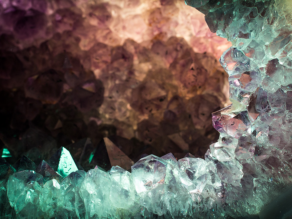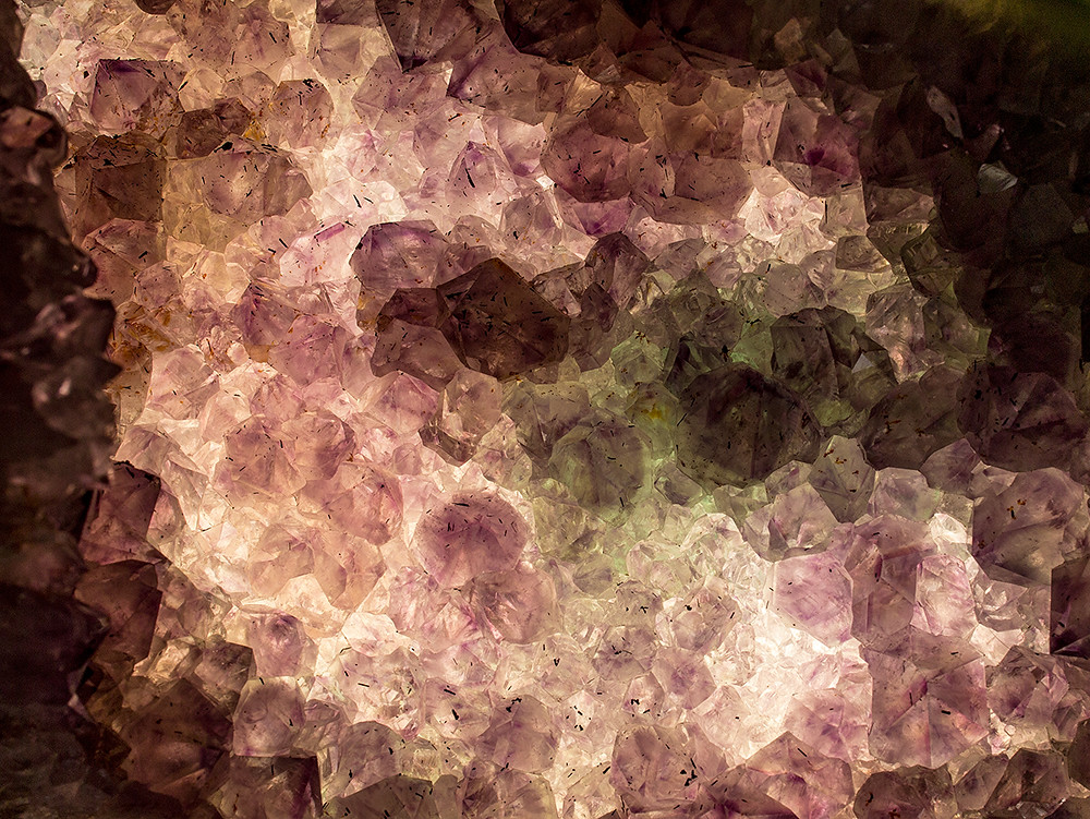 Then I tried shining the light directly through the base of the geode. Again surprisingly, the crystals lost their typical purple amethyst colouration: