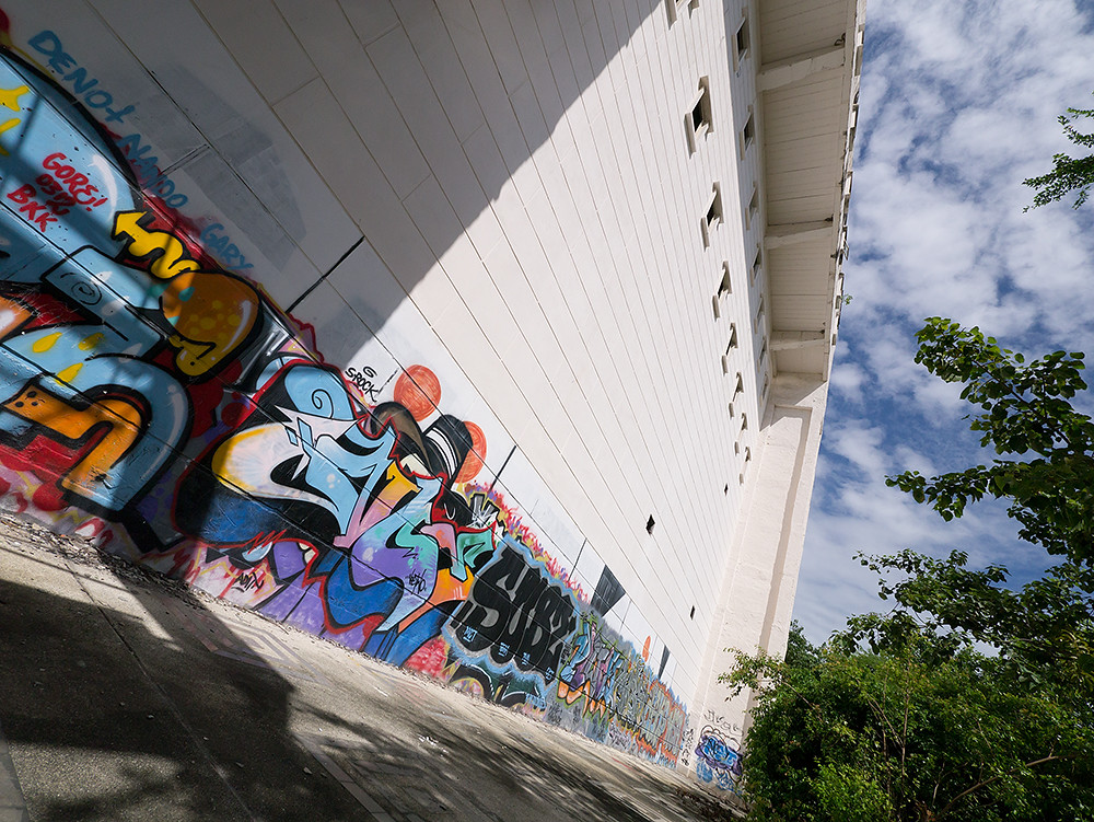 There are steps leading upstairs to god knows what. It would take abs like Kwan to check those out, so we didn’t. Instead, we ponced around the outside where there was plenty of graffiti to point a camera at:
