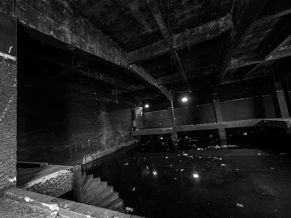 Inside is the rather spooky dance floor which is now a pond: