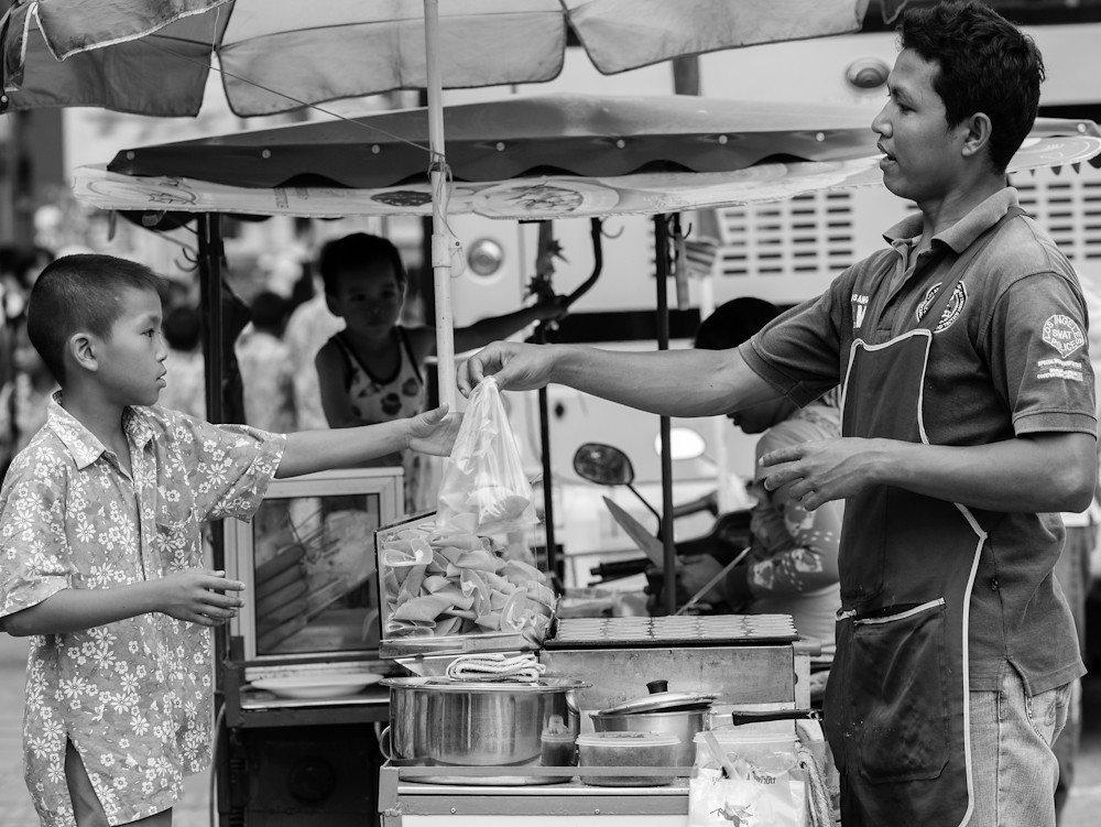 And that is where the gear comes is important. In theory you can, and probably should, shoot a selection of focal lengths to get different looks in your street photography. Do you want to capture just the face, or a small scene, or a whole street? Each require a different focal length of lens, or a lot of walking to put you in the right place to get the image you are after. A popular focal length is 50mm (25mm on M43); and that will get you shots like this from a metre of so away: