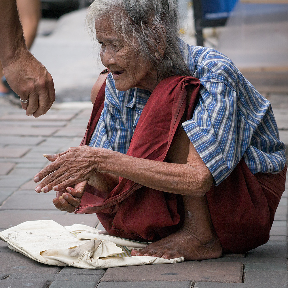 2012-08-08| Spike saysThat is not my hand in the photo. Firstly, to be my hand and also be holding the camera, my arm would need to be three metres long with a revised form of articulation. But the real give-away is the fact that my hand is much more elegant that that, with skin more delicate than Keira Knightley’s bum. I am normally a stingy bastard and never give money to beggars; but I make an exception with beggars that I photograph; so she was subsequently the beneficiary of my largesse; if 20 baht qualifies as largesse.