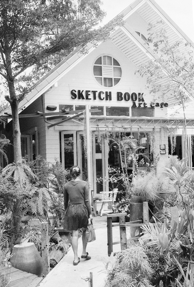 The Sketch Book Art Cafe in Jomtien. I like the soft textures of the roof, and thanks to the customer who was arriving as I was leaving: