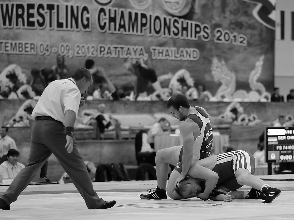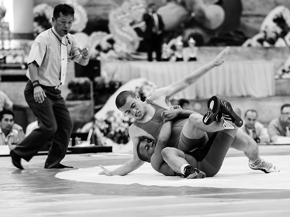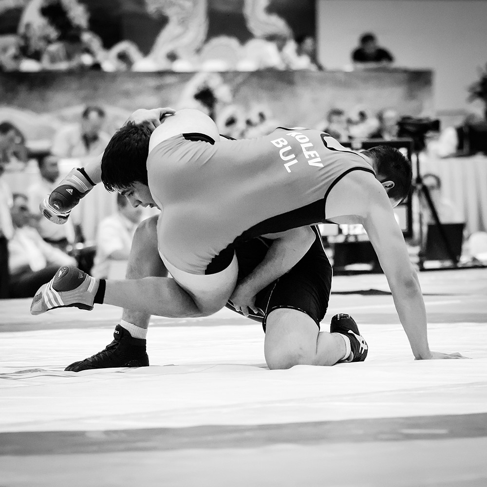 Firstly, the lighting was appalling for photography, so I was shooting at ISO 2000 and up. Secondly, several hundred sweaty male wrestlers in one place are a bit smelly, and their supporting teams are not much better. Five minutes of the Bulgarian squad screaming instructions to their man, only inches from my left ear and nostril, was like a lifetime in any other universe.