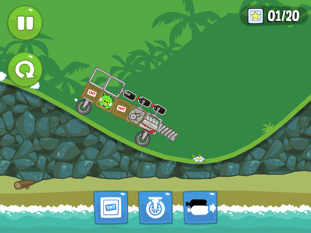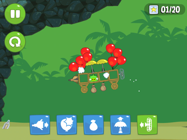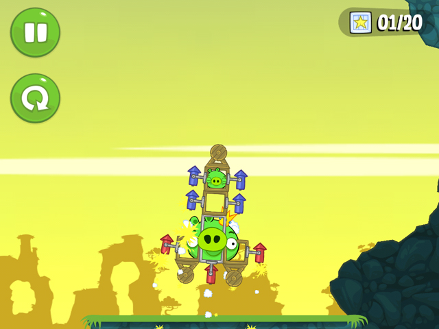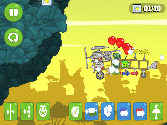 This game is much tougher than Angry Birds, and the understanding of the physics of the game is essential to success, especially when you build flying machines which seem to mirror actual flight when it comes to subtly altering the centre of gravity or the impact of changing the amount of power applied. Many a happy hour can be spent tweaking machines to obtain exactly the flight characteristics you need.