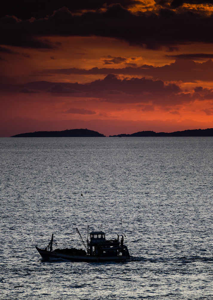 My only shot of the day is another unnecessary sunset; but it was a good sunset and there was a convenient fishing boat in the way.