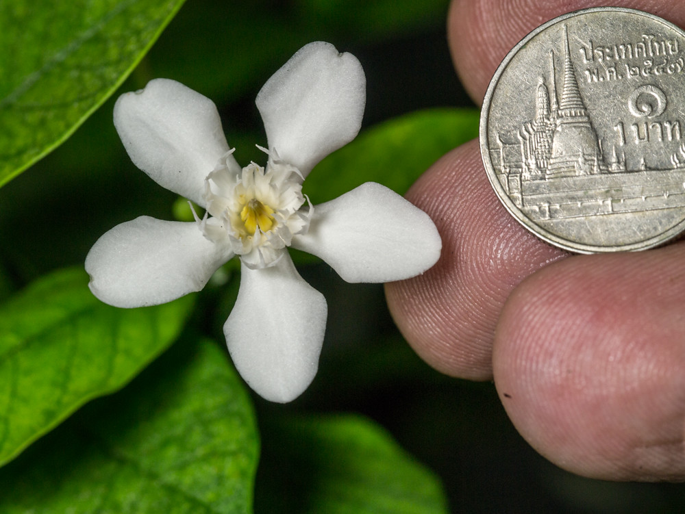 Seemed to me that the Olympus provided more magnification that the Yashica, but back home to confirm. The target was a small flower, the size of which is illustrated by a baht coin held in my slightly grubby fingers: