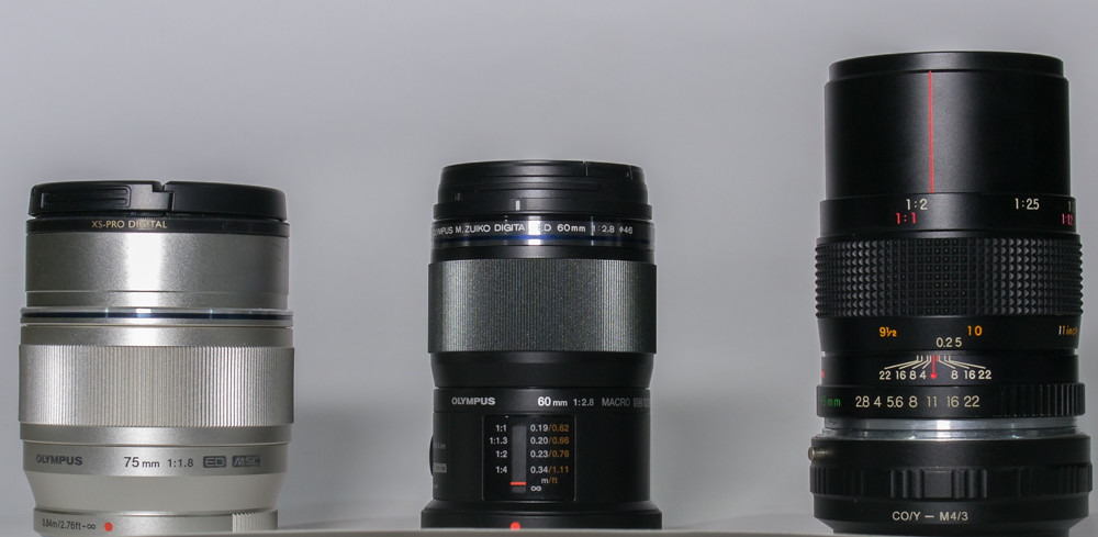 To give a further idea of size, here it is with the Olympus 75mm and the Yashica 55mm macro: