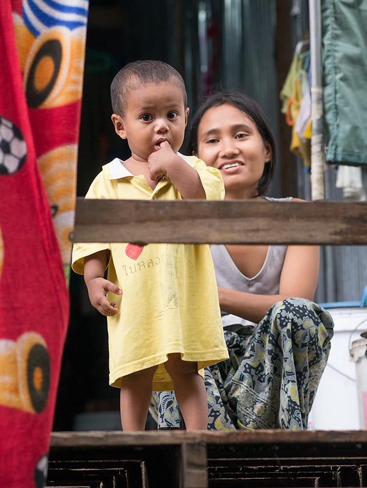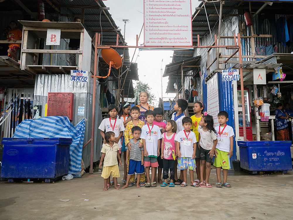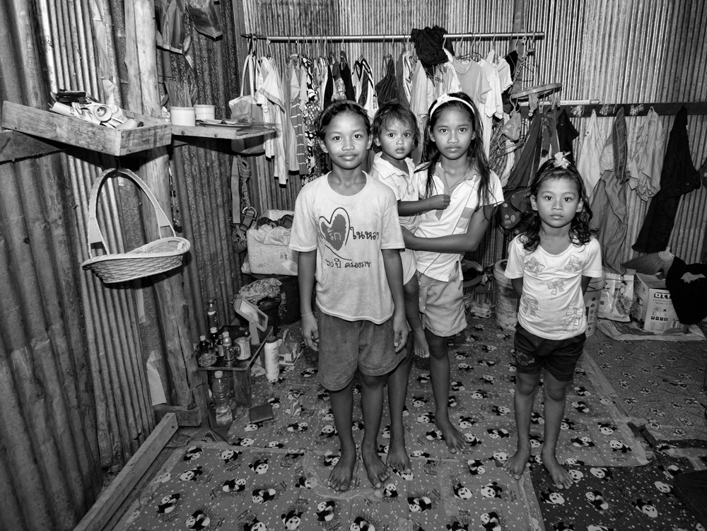 Whatever the rate of progress, it is being built by workers from Thailand and neigbouring countries to whom the phrase “minimum wage” is an unknown. At the end of a long day working on your condo, they return to a construction camp where their accommodation is an airless, windowless tin shack, something less than ten square metres in size, where they live with their children; such as the four kids shown above in the tiny space they share with their parents.