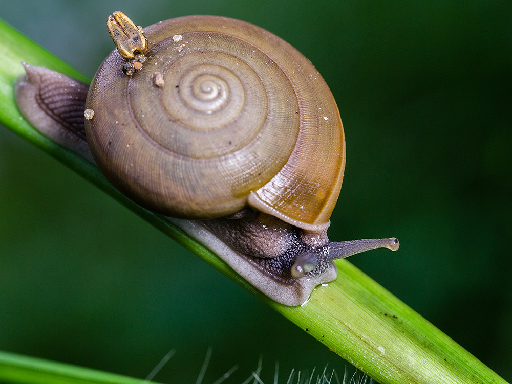 We stopped on a quiet country road and started to look for targets. I saw a sea of green. He saw spiders, lizards, snails, butterflies, moths. He would then point them out to me and I would see a sea of green. With some further pointing I finally spotted the prey. Had I been on my own, I would have come home with a photos of a leaf and a snail; and not a very good snail at that. Instead I came home home with these: